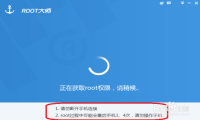 4、安裝成功之后,軟件會自動對手機進行root操作。這個時候你會在電腦的軟件界面上看到如下圖的操作,這個時候請不要隨意移動手機,避免連接斷開root失敗;