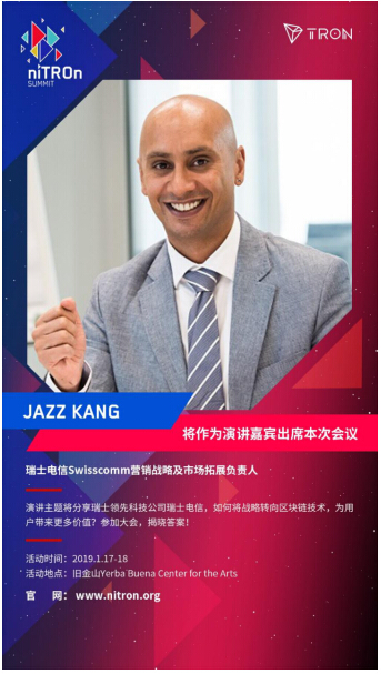 Jazz Kang, 瑞士電信Swisscomm營銷戰(zhàn)略及市場拓展負責(zé)人將出席波場TRON2019年區(qū)塊鏈峰會niTROn作為主講嘉賓。瑞士領(lǐng)先科技公司瑞士電信,如何將戰(zhàn)略轉(zhuǎn)向區(qū)塊鏈技術(shù),為用戶帶來更多價值。