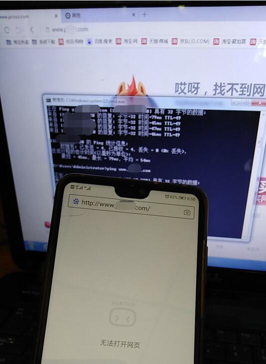 然后我們通過移動(dòng)寬帶進(jìn)行訪問這個(gè)被屏蔽的域名, 結(jié)果發(fā)現(xiàn)無法打開, 通過多臺(tái)電腦均無法打開 ,