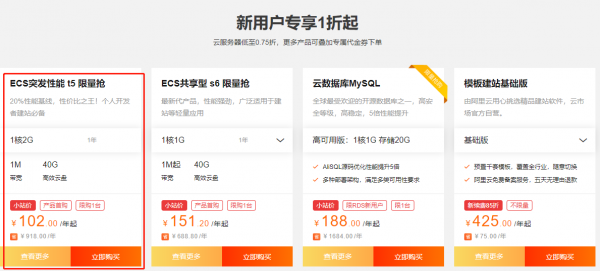 然后,在下面新用戶限時1折起里這款102元的阿里云服務(wù)器,點擊立即購買。