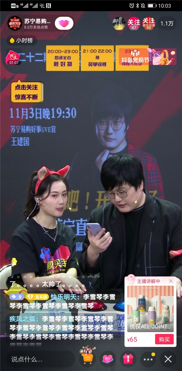 此次整場直播,都是以“爆梗吧,開心就好”為主題的蘇寧易購1111心愿好物直播節(jié)的一部分。當(dāng)晚直播不但推出了包括奶粉、紙尿褲、babycare手口濕巾、ALL-JOINT 優(yōu)僅兒童保溫杯等在內(nèi)的寶寶用品,還有護(hù)手霜、護(hù)唇膏、紅豆絨綿四件套、東阿百年堂阿膠固元糕、小零食等多種多樣的商品。并且,直播當(dāng)晚共推出4輪免單抽獎(jiǎng)、1份超級(jí)錦鯉大禮包抽獎(jiǎng),還有粉絲專屬優(yōu)惠券,可謂實(shí)力寵粉毫不手軟。