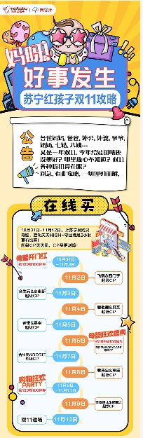 蘇寧紅孩子,雙十一期間線上線下滿滿當(dāng)當(dāng)?shù)母@?此時(shí)不省更待何時(shí),需要母嬰產(chǎn)品的寶爸寶媽們千萬別錯(cuò)過,趕快去給寶寶囤貨吧!