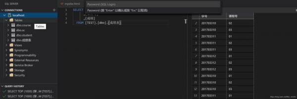 8.配置完成,到這里就可以在vs code里對sql server進行操作了。