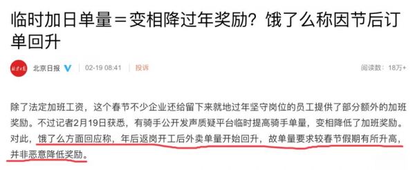 今天突然冒出一條奇怪的新聞:餓了么回應(yīng)變相降低騎手過(guò)年獎(jiǎng)勵(lì)。