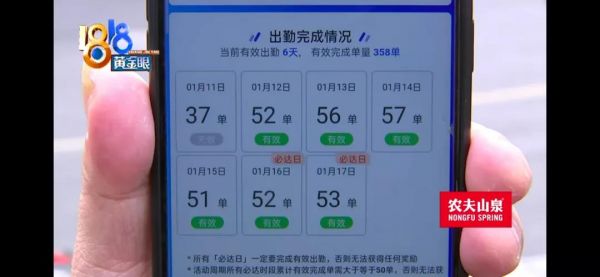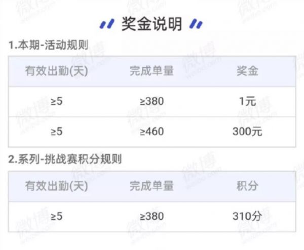 很多騎手為了獎(jiǎng)金放棄了回家,結(jié)果到了第6期,明明在春節(jié)假期內(nèi),平臺(tái)單量變少,工作任務(wù)卻提高到380單(是上一期的近4倍),故意讓騎手無(wú)法完成。騎手稱自己留在北京就是為了這筆活動(dòng)獎(jiǎng)金,現(xiàn)在對(duì)著這個(gè)不可能完成的任務(wù)欲哭無(wú)淚,求助微博討公道。