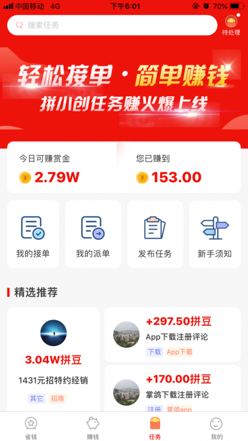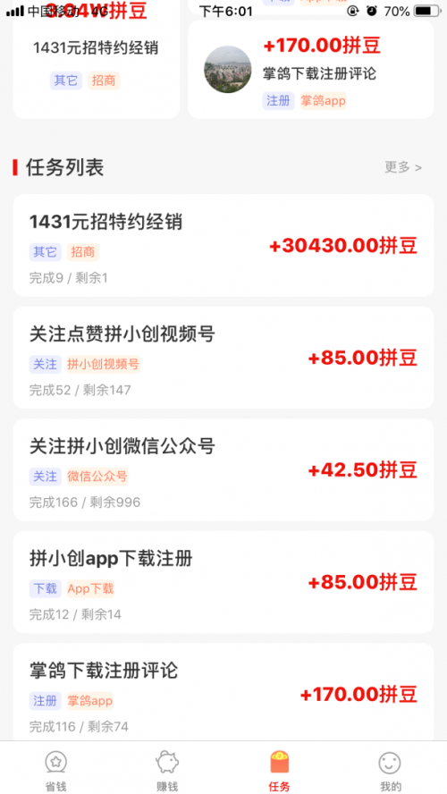 平臺內(nèi)還有各種線上任務(wù),包括不限于APP注冊、關(guān)注公眾號、APP下載、點(diǎn)贊、漲粉、拼一拼、砍一刀等。分享或者自己做任務(wù)可以賺取高額的傭金。平臺還有每日看視頻、文章、小說等等都可以賺錢,這些都是零成本的賺錢項(xiàng)目,你只要每天發(fā)發(fā)朋友圈分享給好友或者自己去參與就有“收入”。當(dāng)然平臺也聚合共享設(shè)備布點(diǎn)、刷臉支付、彩票銷售布點(diǎn)、商家pos服務(wù)、項(xiàng)目招商、線下商家引流等多個(gè)領(lǐng)域優(yōu)質(zhì)創(chuàng)業(yè)項(xiàng)目。