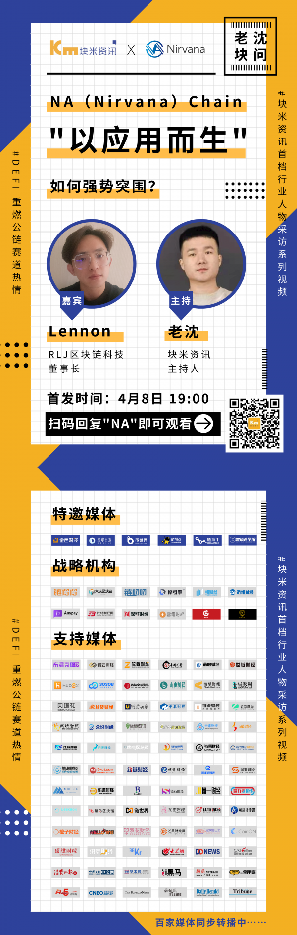 塊米資訊原創(chuàng)自制欄目《老沈塊問》已于4月8日19:00首發(fā)于官方公眾號平臺,彼時(shí)百家媒體同步報(bào)道?!独仙驂K問》是由北京英特魔方品牌策劃有限公司精心打造的一檔區(qū)塊鏈訪談節(jié)目,該節(jié)目由李彩紅監(jiān)制,老沈主持。首期訪談特別邀請RLJ(睿霖嘉)區(qū)塊鏈科技董事長Lennon 作為嘉賓。本節(jié)目意在讓更多人了解區(qū)塊鏈行業(yè)的進(jìn)展,致力于將其打造成未來區(qū)塊鏈歷史長河中的一顆明珠,真正推動區(qū)塊鏈行業(yè)發(fā)展。在這里,我們探討行業(yè)發(fā)展趨勢、發(fā)展現(xiàn)狀以及未來機(jī)遇。節(jié)目特邀嘉賓與主持人共同完成節(jié)目錄制,節(jié)目嘉賓將邀請:項(xiàng)目方、投資機(jī)構(gòu)、錢包、礦場等各領(lǐng)域優(yōu)秀代表及專家做客訪談間,以通俗易懂的話語向大眾詮釋關(guān)于區(qū)塊鏈里的種種并結(jié)合自己的觀點(diǎn)分享案例。