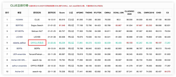 據(jù)了解,2020年12月,小布助手的語義理解模型在行業(yè)最權(quán)威的中文語言理解測評基準(zhǔn)(CLUE)總排行榜上位列第五,之后一直保持排名前五。另外,小布助手已經(jīng)在文本相似度、上下文推理、成語閱讀理解三個子任務(wù)上都獲得了最高分。