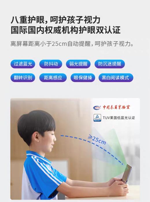 很多家長都非常擔(dān)心孩子在使用訊飛智能學(xué)習(xí)機(jī)X2 Pro會(huì)影響視力,其實(shí)訊飛智能學(xué)習(xí)機(jī)X2 Pro采用了八項(xiàng)功能來呵護(hù)孩子的視力。首先,它可以充分過濾藍(lán)光,避免屏幕強(qiáng)光影響孩子的視力,其次就是防抖動(dòng)功能,能避免屏幕移動(dòng)對(duì)孩子視力的影響。而對(duì)于長時(shí)間使用的話,訊飛智能學(xué)習(xí)機(jī)X2 Pro還有防沉迷提醒,實(shí)時(shí)提醒孩子注意休息,確保在達(dá)成有效學(xué)習(xí)時(shí)間的前提下,保護(hù)孩子的視力健康,從而做到學(xué)習(xí),健康兩不誤。