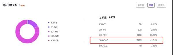 同觀測品牌“花西子”的直播數(shù)據(jù),發(fā)現(xiàn)7月24日的直播中,高客單的商品占比較大,說明利潤款是其直播間主要的營銷方向。