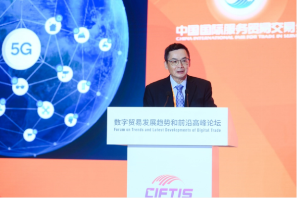 高通全球高級(jí)副總裁、技術(shù)許可業(yè)務(wù)中國(guó)區(qū)總經(jīng)理錢堃在“數(shù)字貿(mào)易發(fā)展趨勢(shì)和前沿高峰論壇”上發(fā)表演講