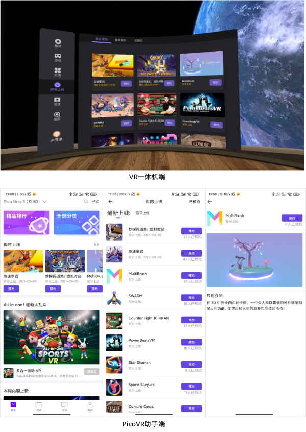國(guó)內(nèi)知名VR一體機(jī)品牌商Pico于9月7日正式在手機(jī)端PicoVR助手和VR一體機(jī)內(nèi)同步更新“即將上線”功能,用戶可通過“即將上線”功能預(yù)約Pico Store內(nèi)的將上線游戲及應(yīng)用,從今以后用戶朋友們?cè)僖膊槐負(fù)?dān)心錯(cuò)過精彩內(nèi)容上新!據(jù)悉,此功能更新的同時(shí),已有10余款游戲及應(yīng)用同步出現(xiàn)在“即將上線”內(nèi)容庫中,趕快預(yù)約起來吧!