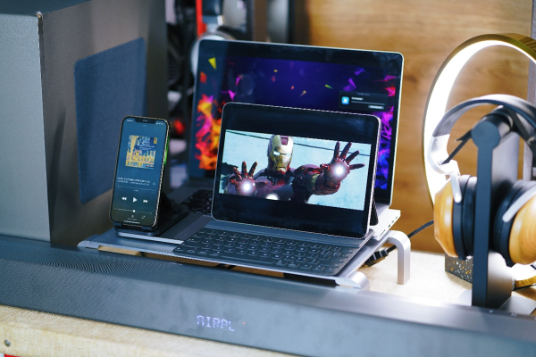 實(shí)際體驗(yàn)效果也非常不錯(cuò),聲音傳輸實(shí)時(shí)無延遲,音質(zhì)也相當(dāng)飽滿大氣。雖然Airplay目前尚不支持杜比全景聲信號(hào)的無線傳輸,但滿足在家中隨手抱著平板追個(gè)劇、看看愛奇藝和BiliBili是完全夠用的,音效比耳機(jī)或者移動(dòng)設(shè)備自帶的揚(yáng)聲器高出了幾個(gè)檔次。