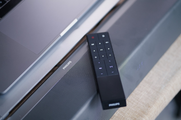操控部分主要由機(jī)身上的觸摸式按鍵、獨(dú)立遙控器和手機(jī)配套Philips Sound APP共同完成,直觀且方便,當(dāng)然直接下載 “Play-Fi” app 也可以直接操作使用。