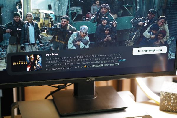 我們播放原生杜比視界+杜比立體聲的正版漫威神作《鋼鐵俠》進(jìn)行測試。