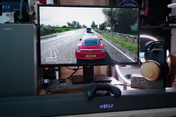 在搭配游戲主機(jī)使用時(shí),我們可以選擇HDMI直連或使用游戲主機(jī)的光纖輸出單獨(dú)連接B8905,即可完美解碼游戲的音頻信息,在支持多聲道數(shù)字輸出的游戲里,比如《Forza Horizon 4》,我們可以完整體驗(yàn)到由杜比環(huán)繞技術(shù)和獨(dú)立低音炮帶來的逼真聲場和深沉低頻,汽車引擎的轟鳴和路面石子的細(xì)微反饋都能得到充分還原,有絕佳的游戲臨場感。
