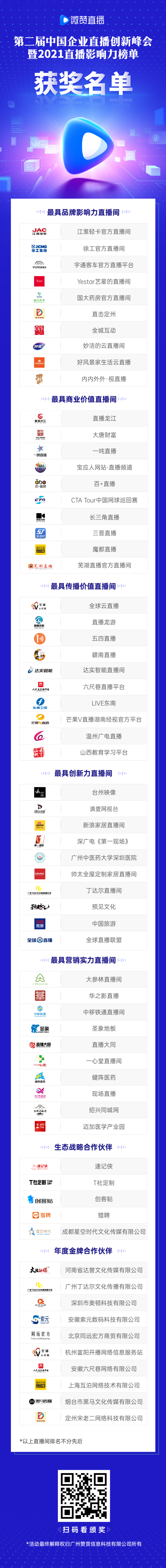 附:2021直播影響力評(píng)選盛典獲獎(jiǎng)名單