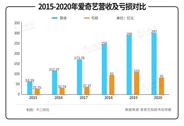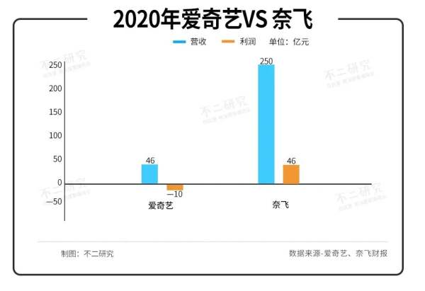 愛奇藝2020年?duì)I收46億美元,凈虧損11億美元;對(duì)比奈飛,其2020年?duì)I收250億美元,營業(yè)利潤46億美元。