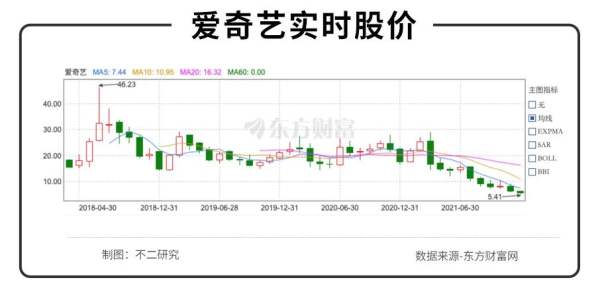 截止美東時(shí)間12月2日美股收盤,愛奇藝報(bào)收5.59美元/股,相較今年3月的高點(diǎn)28.91美元/股,股價(jià)暴跌80%;拉長時(shí)間線,對(duì)比上市之初46.23美元/股的高光時(shí)刻,市值更是縮水近90%。