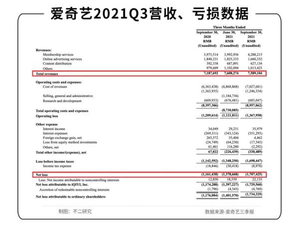 連續(xù)數(shù)十年虧損之后,愛奇藝在三季報(bào)中仍未看到盈利曙光:今年三季度,凈虧損高達(dá)17億元(約合2.684億美元),虧損同比增長41.7%,但當(dāng)季營收、訂閱會(huì)員卻僅有個(gè)位數(shù)的增長。