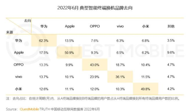 高端形象的建立,讓華為收獲了一批高粘性、高忠誠(chéng)度、高凈值的用戶群體。近期,據(jù)知名機(jī)構(gòu)QuestMobile發(fā)布的《2022中國(guó)智能終端市場(chǎng)半年報(bào)告》顯示,從華為換到華為的用戶比例高達(dá)62.3%,其次是蘋果,忠誠(chéng)度高達(dá)50.9%。再是小米、 OPPO、vivo。這說明華為品牌的忠誠(chéng)度是最高的。而近日隨著Mate 50的發(fā)布,各類社交平臺(tái)上,同樣不乏這樣的聲音:“30一直在等50”、“Mate 10 Pro用了五年,一直等到現(xiàn)在”……另外,華為方面還透露,發(fā)布會(huì)當(dāng)天,Mate 50系列在華為官網(wǎng)的預(yù)約量已超245萬(wàn)。種種數(shù)據(jù)都在印證著華為的用戶根基深厚。