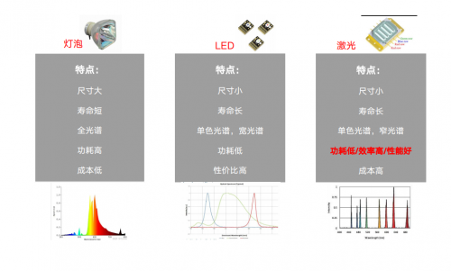 首先,投影儀普遍采用的光源是以下三種;燈泡、LED、激光。