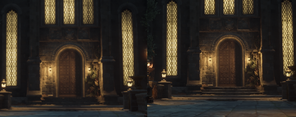 DLSS 3 幀生成技術(shù)是此次 GeForce RTX 40系顯卡的重要更新,在此次更新中實(shí)現(xiàn)了在不犧牲甚至是提升畫(huà)質(zhì)的情況下,使幀率進(jìn)行大幅度的提升,以下視圖可以看出,開(kāi)啟DLSS 3后畫(huà)面基本沒(méi)有變動(dòng),同時(shí)部分畫(huà)面仍然有質(zhì)感上的提升。