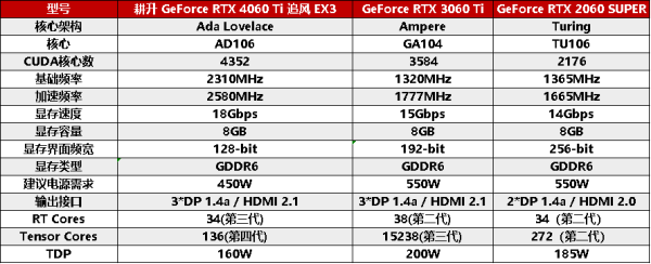 同時(shí)本次測(cè)試將同時(shí)與GeForce RTX 3060 Ti 和GeForce RTX 2060 SUPER進(jìn)行直接比對(duì)。