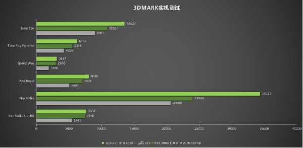 從測(cè)試中不難發(fā)現(xiàn),耕升 GeForce RTX 4060 Ti 追風(fēng) EX3在3DMARK中的數(shù)據(jù),與GeForce RTX 3060 Ti 和GeForce RTX 2060 SUPER可以拉開(kāi)了一定的差距,耕升 GeForce RTX 4060 Ti 追風(fēng) EX3在Fire Strike 的分?jǐn)?shù)測(cè)試鐘甚至一度來(lái)到了34332分,而在 Port Royal測(cè)試中也一度來(lái)到了8038的分?jǐn)?shù)。說(shuō)明耕升 GeForce RTX 4060 Ti 追風(fēng) EX3是擁有一定實(shí)力的。