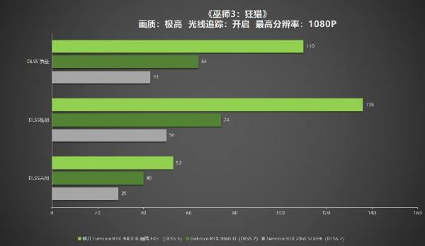 1080P下的《巫師3》優(yōu)化相當(dāng)不錯(cuò),不開(kāi)啟DLSS的情況下耕升 GeForce RTX 4060 Ti 追風(fēng) EX3即可以達(dá)到53幀的正常游玩幀率,開(kāi)啟DLSS 性能模式后,游戲的幀率一度提升至136幀,DLSS質(zhì)量模式的提升幅度也高達(dá)105%。GeForce RTX 3060 Ti 和GeForce RTX 2060 SUPER在開(kāi)啟DLSS 2 的游戲模式后也能得到較為流暢的游戲體驗(yàn)。