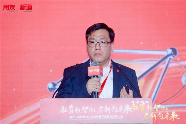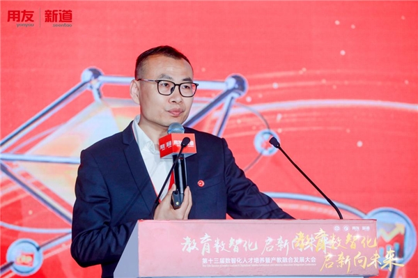 新道科技股份有限公司金融領(lǐng)域?qū)<沂⒑阋?ldquo;金融場景應(yīng)用與金融科技人才培養(yǎng)實踐”為主題作了演講。石立恒表示,數(shù)字經(jīng)濟時代下,金融業(yè)率先進行數(shù)字化轉(zhuǎn)型,同時需加快金融科技人才梯隊建設(shè),打造校企聯(lián)合培養(yǎng)、產(chǎn)學研用協(xié)同攻關(guān)等合作育人模式,加強職業(yè)操守教育,培養(yǎng)德才兼?zhèn)涞慕鹑诳萍既瞬拧K岢?,在金融業(yè)數(shù)字化轉(zhuǎn)型中落地很多應(yīng)用場景,如供應(yīng)鏈金融、客戶畫像大數(shù)據(jù)分析、信用卡反欺詐預(yù)測、低代碼開發(fā)應(yīng)用、數(shù)字營業(yè)廳等,導致金融機構(gòu)對于人才需求結(jié)構(gòu)的變化。他表示,產(chǎn)教融合才能共育金融科技人才,新道科技借助用友YonBIP平臺,將區(qū)塊鏈、人工智能等新技術(shù)解決金融業(yè)務(wù)場景上的問題落到實處,協(xié)同院校,通過專業(yè)、學科、學院合作,從實踐基地到專業(yè)共建到產(chǎn)業(yè)學院,創(chuàng)新育人模式。