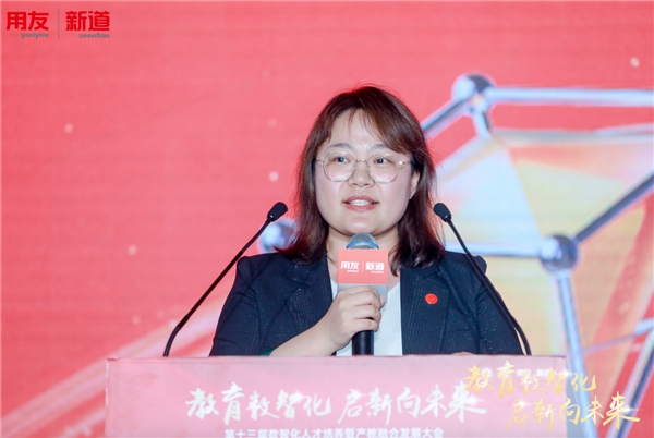 新道科技股份有限公司財經(jīng)領(lǐng)域?qū)<覐埬饶纫?ldquo;聚產(chǎn)業(yè)融技術(shù)、用中國管理數(shù)智化最佳實踐成就高端技術(shù)技能人才培養(yǎng)”為主題作了演講。張娜娜指出數(shù)智技術(shù)驅(qū)動的融合創(chuàng)新是我們共同當下在做的事情,融合創(chuàng)新表現(xiàn)的特征分為:分類、分層推進;廣度、深度、跨度并重;優(yōu)化重構(gòu),強化實踐;多元協(xié)同等。張娜娜分享了數(shù)智教改的整體框架體系,將產(chǎn)業(yè)的具體行業(yè)企業(yè)需求、企業(yè)數(shù)智化實踐、企業(yè)案例數(shù)據(jù)、企業(yè)導師、新一代技術(shù)平臺和院校的財經(jīng)商貿(mào)大類人才需求能力畫像、資源、實踐基地、課程資源開發(fā)等共識之后融合,是基本的合作思路。新道科技打造了“六位一體”富案例生態(tài)的教學平臺,支撐案例開發(fā)、案例教學、案例大賽、案例教材、案例思政、案例研究等,助力院校數(shù)智化專業(yè)提質(zhì),以及內(nèi)涵提升,共創(chuàng)產(chǎn)教融合新形態(tài)。