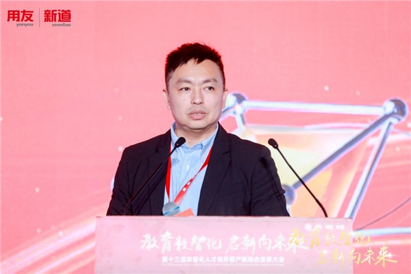 新道科技股份有限公司AIE事業(yè)部副總經(jīng)理、高級專家陶磊以“數(shù)字化、行業(yè)化、特色化商科綜合實驗室建設(shè)方案”進行主題演講。陶磊表示,學校在人才培養(yǎng)過程當中遇到了很多痛點:缺少產(chǎn)業(yè)資源、缺少數(shù)智化技術(shù)、缺少產(chǎn)業(yè)特色、缺少交叉融合、缺少數(shù)智化場景。他提出通過“三新”方式解決,一是數(shù)智技術(shù)融入學校教學內(nèi)容、場景,二是數(shù)智化企業(yè)運營場景、流程植入到學校實踐內(nèi)容、實踐平臺中,三是不同行業(yè)、不同領(lǐng)域的案例、數(shù)據(jù)融入到學校教學中,使教學內(nèi)容富有趣味性。新道AIE數(shù)智商業(yè)綜合實踐平臺基于用友YonBIP平臺,涉及數(shù)智化企業(yè)的經(jīng)營管控全流程,結(jié)合當?shù)禺a(chǎn)業(yè)或者學校特色專業(yè)的行業(yè)進行定制行業(yè)化案例和數(shù)據(jù),打造學校特色,支撐跨專業(yè)、專業(yè)群的建設(shè),以及虛仿基地建設(shè),訓練學生對專業(yè)能力和綜合能力的綜合運用。