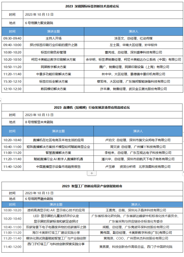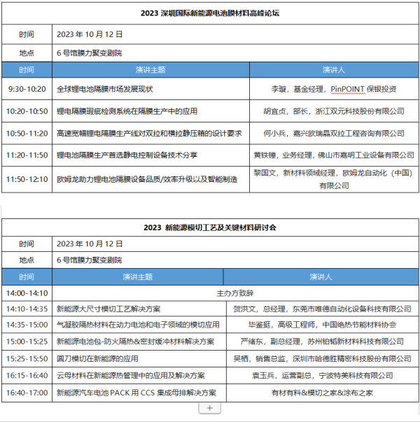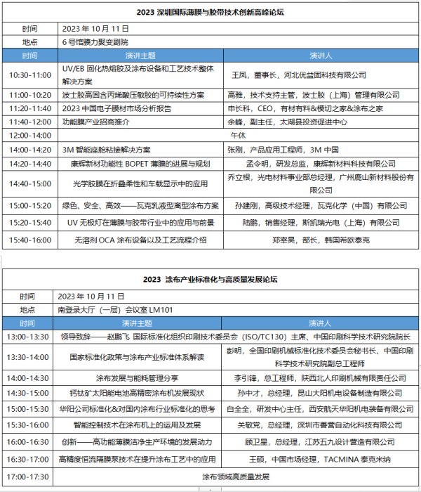2023深圳國際薄膜與膠帶展同期將舉辦“2023深圳國際薄膜與膠帶技術(shù)創(chuàng)新高峰論壇“、“2023 涂布產(chǎn)業(yè)標(biāo)準(zhǔn)化與高質(zhì)量發(fā)展論壇”、“2023 深圳國際新能源電池膜材料高峰論壇“、”2023 新能源模切工藝及關(guān)鍵材料研討會“、”2023 深圳國際標(biāo)簽創(chuàng)新技術(shù)高峰論壇“等近50場高峰論壇,與3M、波士膠、鹿山新材、康輝新材、瓦克化學(xué)、航天華陽、陜西北人、昆山大陽、浙江雙元、歐姆龍、柯尼卡美能達 等企業(yè)專家,圍繞高性能材料、新能源、鋰電池、模切加工、印刷包裝、汽車、半導(dǎo)體、標(biāo)簽等行業(yè)熱門話題,共話行業(yè)現(xiàn)狀,展望未來機遇。