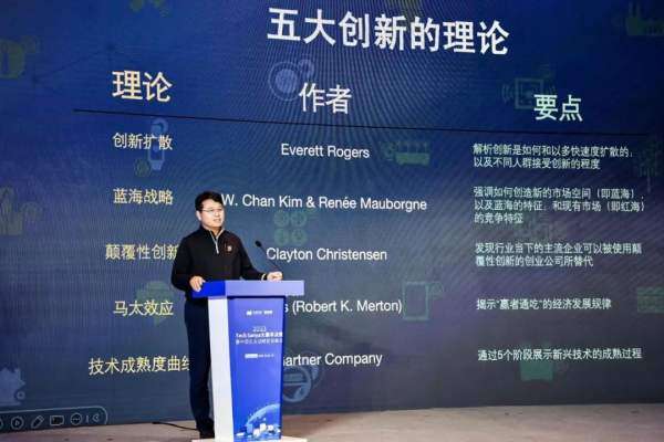 啟明創(chuàng)投投資合伙人、企業(yè)創(chuàng)投聯(lián)盟執(zhí)委理事沈勁做了題為“創(chuàng)新理論及智能化創(chuàng)新三大趨勢”的主題演講,他首先介紹了創(chuàng)新擴散、藍海戰(zhàn)略、顛覆性創(chuàng)新等五大創(chuàng)新理論,并用五大創(chuàng)新理論,對目前三大智能賽道:智能汽車、生成式AI和元宇宙XR進行了精彩的解讀。