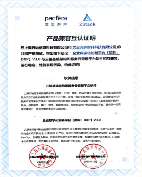 近日,文思海輝智翼云企業(yè)數(shù)字化創(chuàng)新平臺SuperDXP與ZStackIaaS軟件完成兼容性測試,測試結(jié)果表明:雙方產(chǎn)品兼容性良好,運行穩(wěn)定,性能表現(xiàn)優(yōu)異,可滿足企業(yè)的關(guān)鍵性應(yīng)用需求。