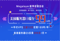 Megalayer是近幾年新晉的美國主機(jī)商,一直以來備受歡迎,主要提供海外服務(wù)器和VPS租用等業(yè)務(wù),目前已經(jīng)在香港、美國、新加坡等地區(qū)部署節(jié)點(diǎn),并且將繼續(xù)在東南亞地區(qū)進(jìn)行戰(zhàn)略布局。Megalayer為回饋廣大新老客戶,特推出夏季促銷活動(dòng),美國服務(wù)器99元搶購,高防服務(wù)器低至299元,年付VPS立減1