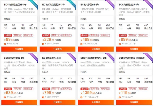 1核2G1M突發(fā)性能型t5云服務(wù)器89元/年,229元/3年;2核4G3M共享型n4云服務(wù)器469元/2年;2核4G3M共享型n4云服務(wù)器799元/3年;2核8G5M共享通用型mn4云服務(wù)器1399元/3年(推薦);