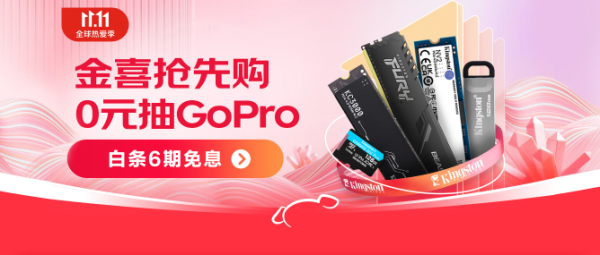 翹首以盼的年終大促,一年一度的11.11狂歡節(jié)即將來臨。隨著10月20日20:00預熱活動的開啟,金士頓作為全球存儲領袖提前上映11.11大戲?;顒悠陂g,金士頓京東自營旗艦店不僅有免費大轉(zhuǎn)盤抽獎贏取GoPro運動相機