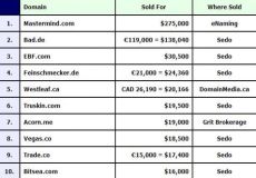A5域名每日快訊:在本期DN榜中,三數(shù)字域名015.com以22.3萬美元,超153萬元的價格榮登榜首位置;域名Mappa.com以127400美元,超87萬元的價格成交,并成功占據(jù)了新一期Sedo榜單的榜首之位。
