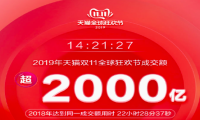 - 天貓和京東雙11數(shù)錢大戰(zhàn)又開始了。2019年天貓雙11全球狂歡節(jié)大家玩得很嗨,只用96秒就幫天貓成交額突破100億,比去年早了29秒。緊接著,12分49秒成交額突破500億,1小時(shí)3分59秒成交額突破1000億。截至11月11日14點(diǎn)21分27秒,成交額突破了2000億,比去年早了8小時(shí)7分10秒,