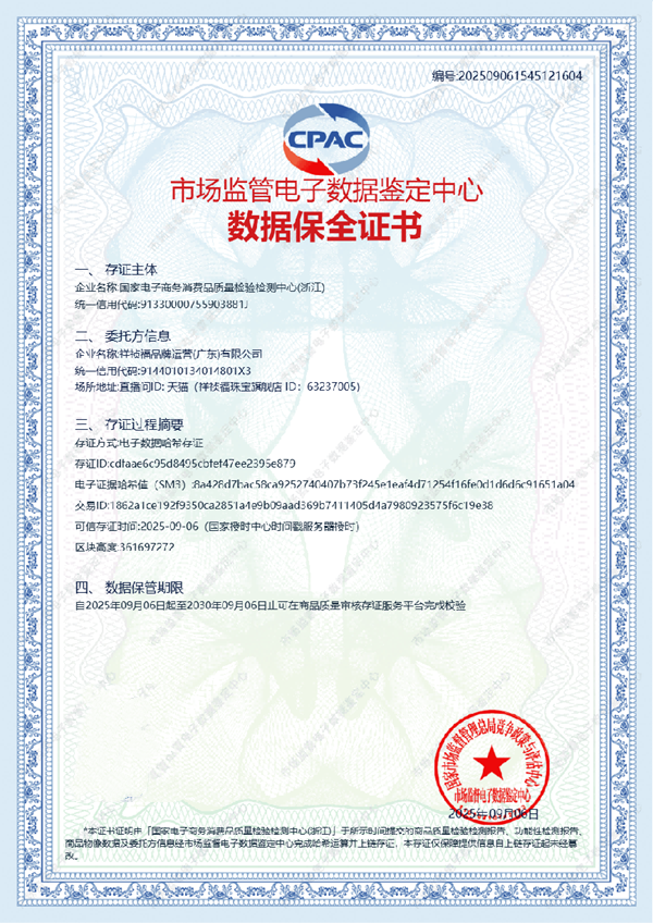 - 珠寶玉石行業(yè)因產(chǎn)品“非標(biāo)準(zhǔn)化”特性,長期面臨線上交易信任壁壘——產(chǎn)地溯源難、品質(zhì)驗(yàn)證難、價(jià)值評(píng)估難等問題,制約著電商渠道的健康發(fā)展。作為行業(yè)領(lǐng)軍品牌,祥禎福率先破局:近日,祥禎福正式成為市場(chǎng)監(jiān)管電子數(shù)據(jù)鑒定中心合作單位,通過接入國家級(jí)存證服務(wù)平臺(tái),將商品信息、質(zhì)檢結(jié)果、經(jīng)營資質(zhì)等核心數(shù)據(jù)進(jìn)行權(quán)威存證