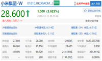 - 小米集團(tuán)股價(jià)漲破20港元 市值超5000億港元