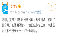 - 支付寶崩了!官方回應(yīng):機(jī)房網(wǎng)絡(luò)短暫抖動(dòng)
