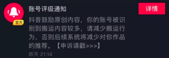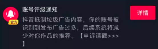 第三,出現(xiàn)抖音評(píng)級(jí),限流嚴(yán)重