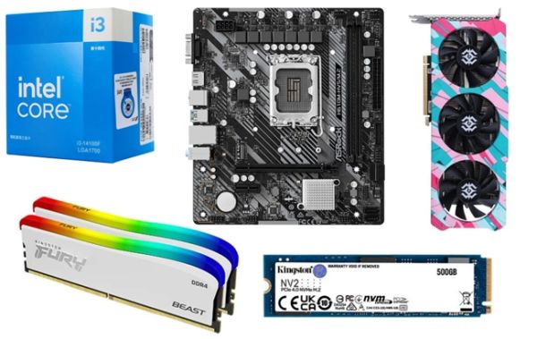同樣的英特爾 i3-14100F處理器,主板選擇了七彩虹的Z690芯片組主板Z690M GAMING PRO V20,相比H610芯片組主板,Z690主板供電能力更強(qiáng),并提供了CPU和內(nèi)存的超頻功能,并支持更高階的PCIe Gen4x4,可為固態(tài)硬盤帶來(lái)更高的性能。而這款主板提供了4條內(nèi)存插槽,2組M.2接口,并提供了相應(yīng)的散熱器。