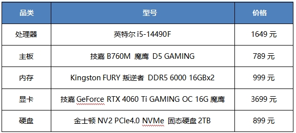 當(dāng)前性價(jià)比非常高的英特爾14代酷睿i5處理器就是中國(guó)市場(chǎng)獨(dú)有的i5-14490F,到手價(jià)只有1600多元。睿頻至高4.9GHz,10核16線程,24MB英特爾智能高速緩存,多任務(wù)處理能力在該價(jià)位十分出色。與之匹配的是英特爾700系列主板,其中技嘉B760M魔鷹D5 GAMING主板的性價(jià)比很高,內(nèi)存D5黑科技可支持96GB 8000+(OC)內(nèi)存,2組PCIe Gen4x4 M.2插槽,并且支持無(wú)CPU更新BIOS,顯卡快拆,無(wú)工具安裝固態(tài)等實(shí)用功能。