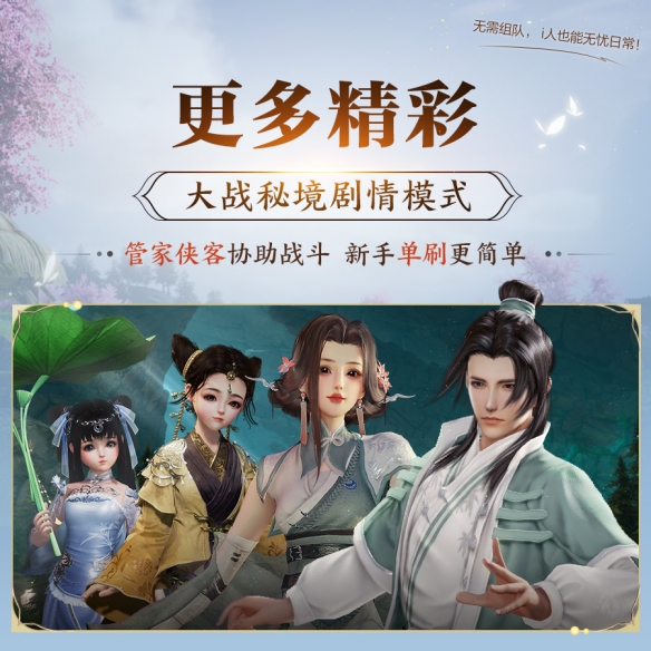 在劇情模式中,俠士們所面對(duì)的首領(lǐng)難度會(huì)有所下降,獲得的任務(wù)收益也相對(duì)較少,但對(duì)于萌新來(lái)說(shuō)將會(huì)有充分的單人練習(xí)時(shí)間,可以有效熟悉大戰(zhàn)秘境打法,了解基礎(chǔ)PVE機(jī)制,無(wú)師也能自通!