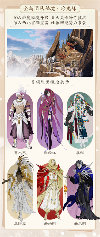 雪峰之巔,短兵相接!全新團(tuán)隊(duì)秘境“冷龍峰”如被囚巨龍,蟄伏于群山重巒間,六位秘境首領(lǐng)五大關(guān)卡即將登場(chǎng),10人難度率先上線測(cè)試服!俠士將深入人跡罕至的西北雪峰,與吐蕃、回紇、清燕樓等多方勢(shì)力交手過(guò)招,隱秘往事即將揭曉……