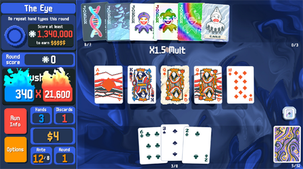 《Balatro》是一款是一款肉鴿類卡牌游戲,玩家將通過收集各式各樣的“小丑牌”獲得加成,并使用“塔羅牌”與“星球牌”等加成卡牌改變 牌種,湊建牌型以通過關(guān)卡,達(dá)成挑戰(zhàn)。